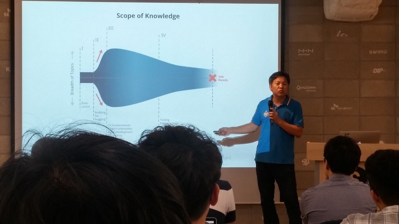 (3단계에서 배워야할 지식의 범위가 폭발적으로 늘어나고, 이후부터는 조금씩 적어진다는 발표자료)