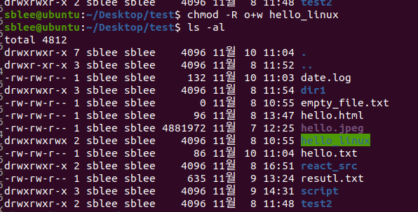 other 권한 추가chmod -R o+[] 폴더명