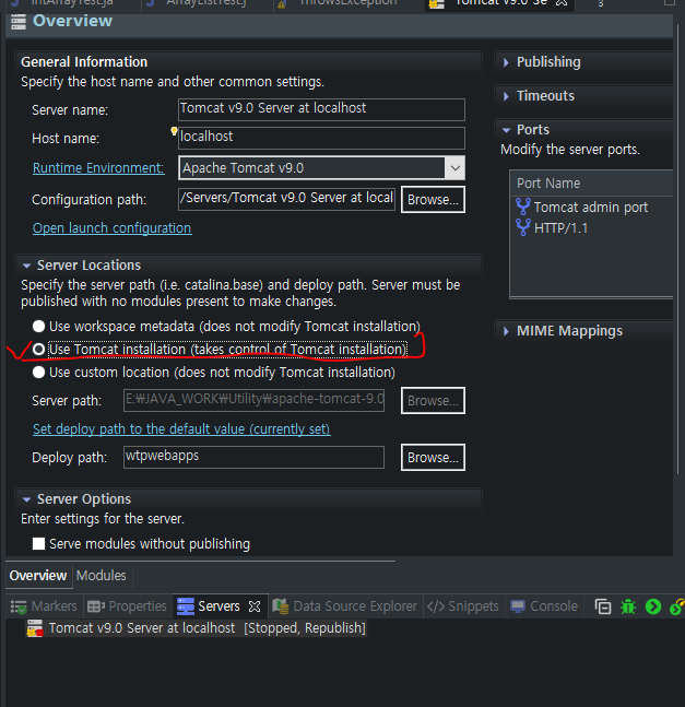 * Use Tomcat installation (takes control of Tomcat installation) 설정!