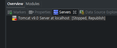* Tomcat V9.0 Sever at localhost [Stopped, Republish] - 우클릭 - Start 클릭!