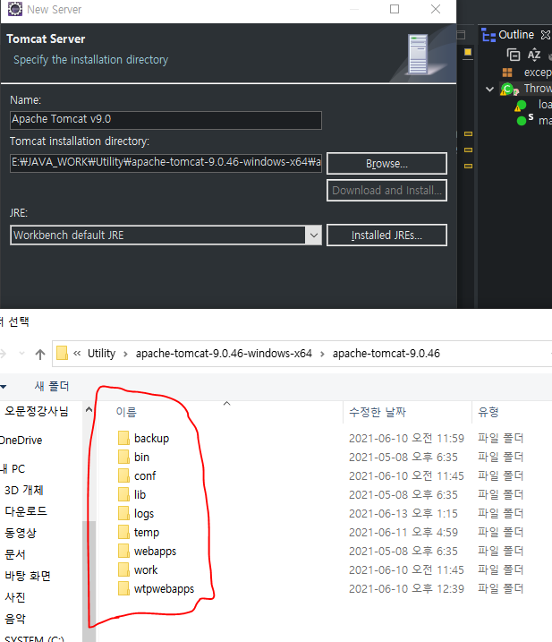 * 다운받은 tomcat파일 경로까지 선택해준다.