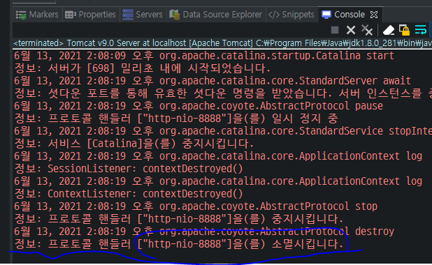 6. 이클립스(Eclipse)에서 Tomcat 서버 종료하기