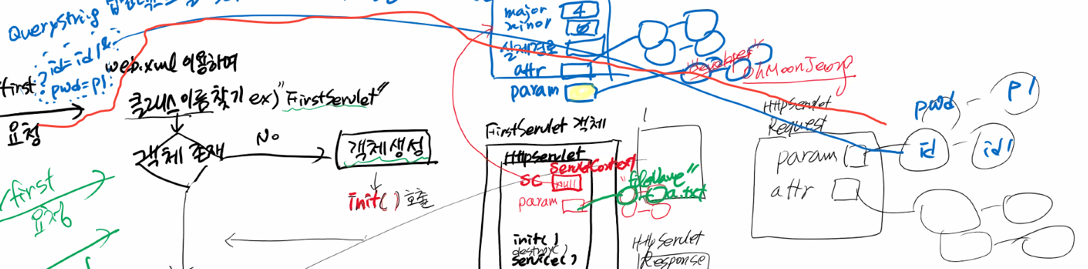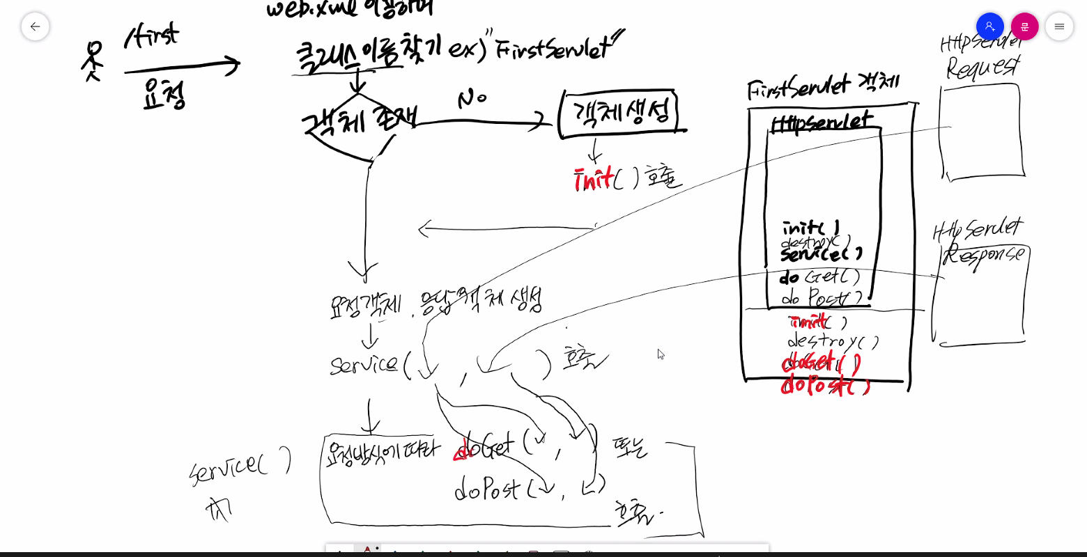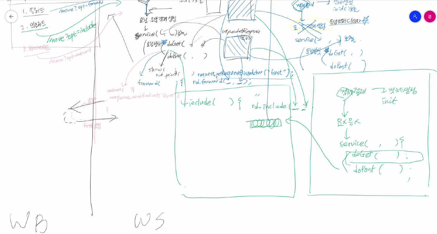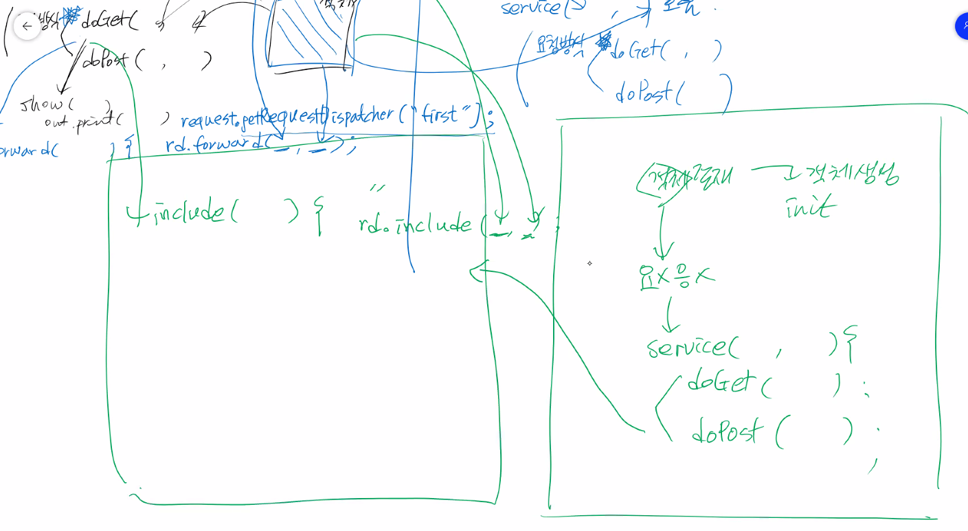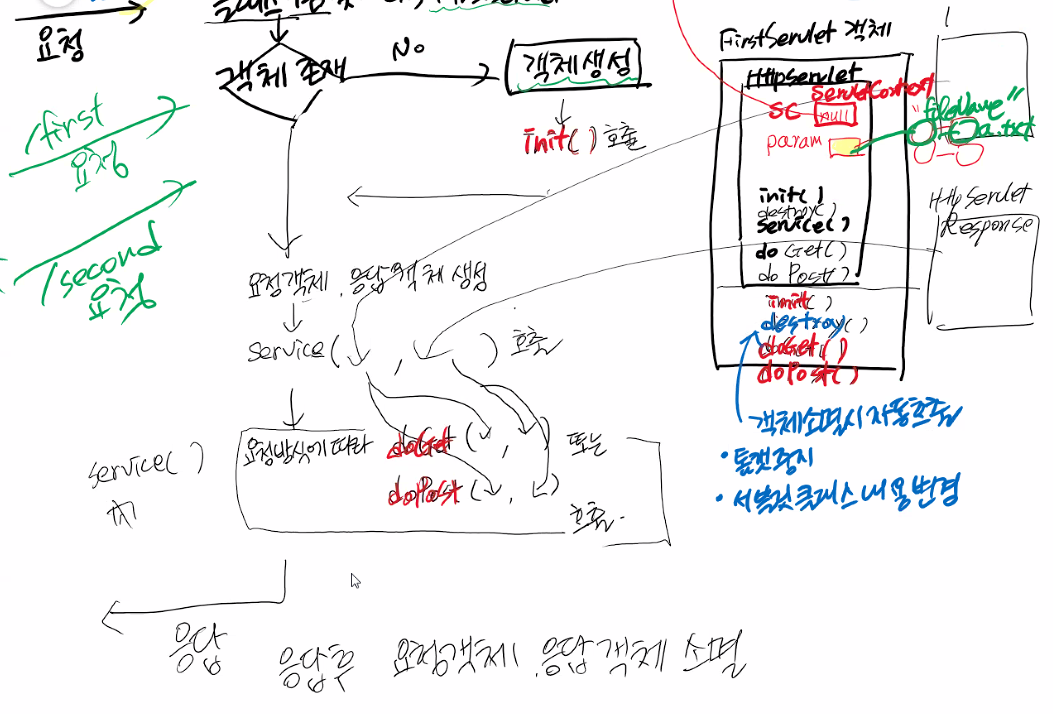서브릿 자체 내에서 요청과 응답을 진행함.