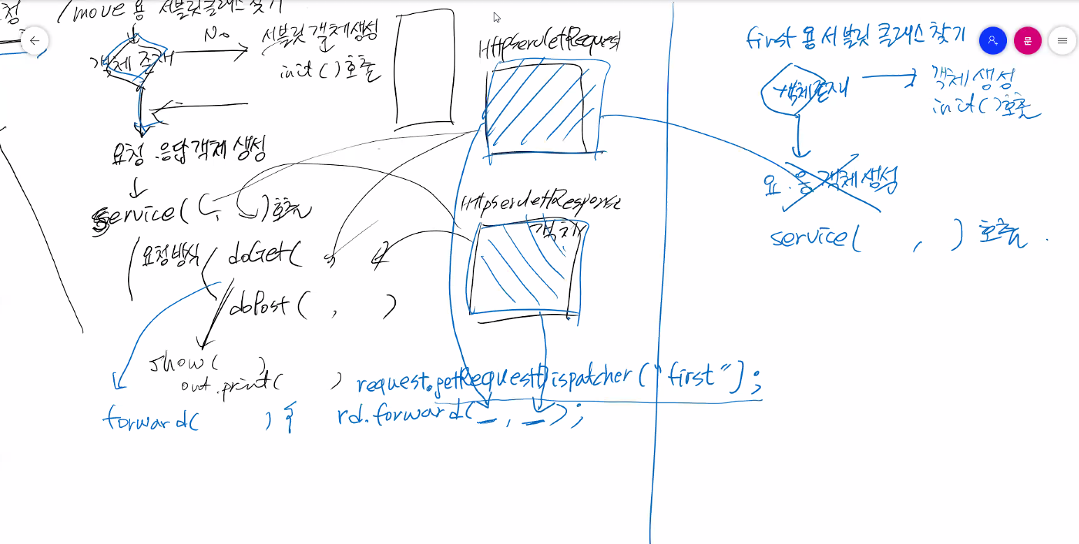 * firstSevlet 객체를 갔다가, 다시 MoveServlet 으로 돌아 옴.