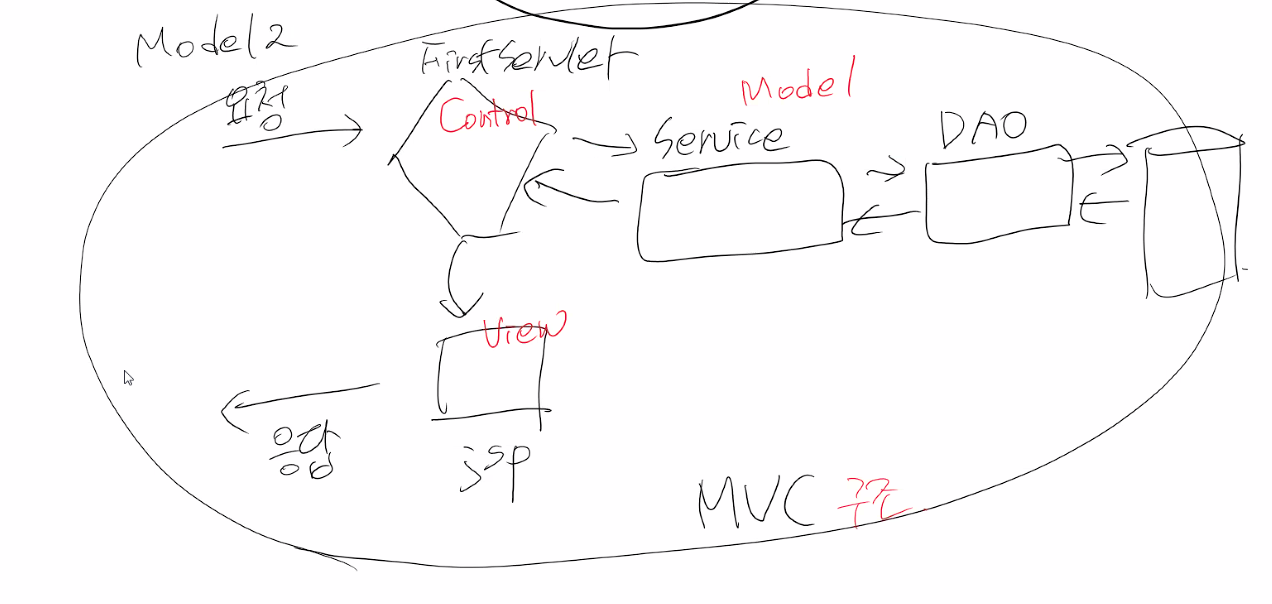 * 요청과 응답을 분리한 Model2 구조 (MVC 디자인 패턴 구조)