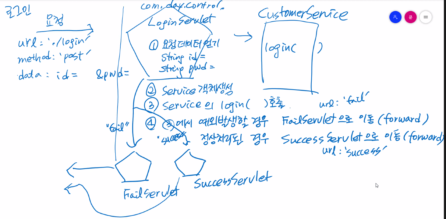 System.out.println("요청전달데이터 id :" +idValue + ", pwd : "+pwdValue);