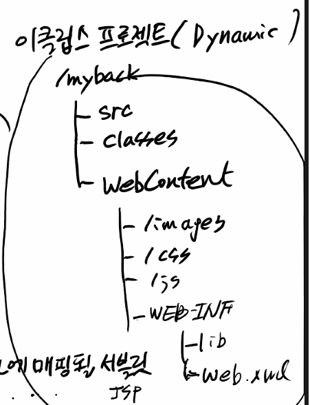 ex) 프로젝트명 : myback (WEB-INF : 반드시 필요한 디렉토리)