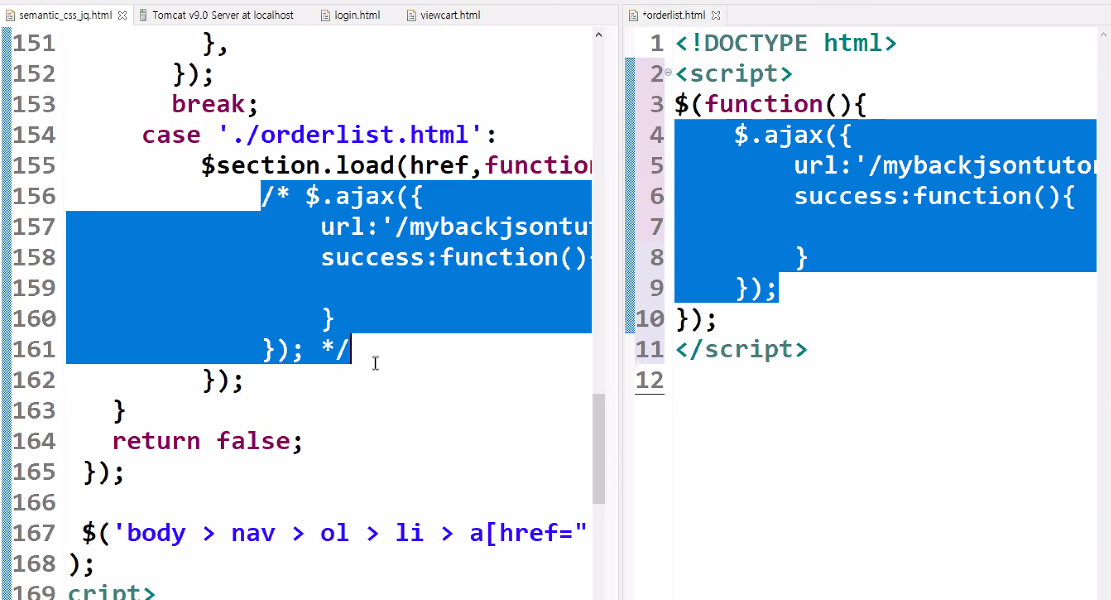 2. 오른쪽 이동될 페이지가 메인페이지에 로드 되면서 이동될 (orderlist.html) 페이지 내 script 에서 ajax 요청.