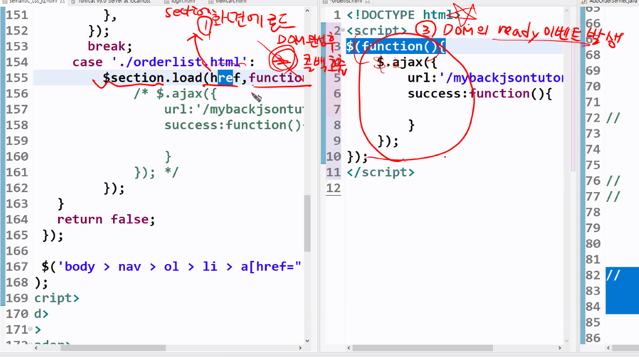 1. 왼쪽 메인페이지에서 DOM완료 후 ajax 요청