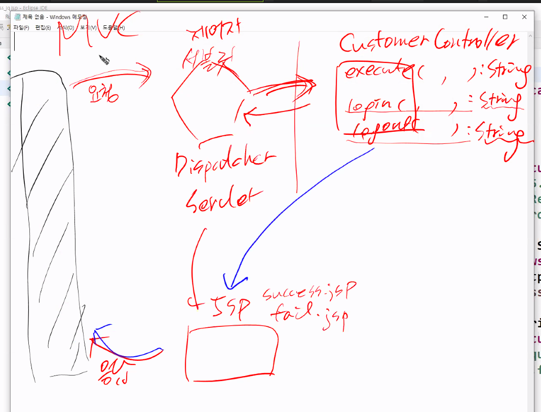 Method 클래스를 사용하여 요청된 주소로 메서드이름을 호출하여 request, response 값을 파라미터 값으로 전달한다.