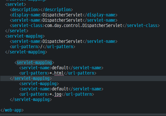 기본 : 톰캣 내장에서는 url패턴을 / 표시일경우 .html, jpg의 경우에는 무시하도록 설정되어있으며,