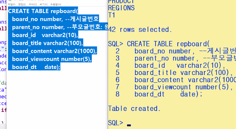 parent_no number,--부모글번호:원글인경우 0 , 답글인경우 부모글 번호값