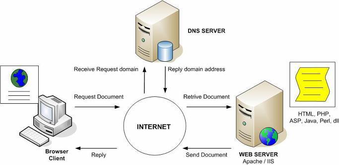 "브라우저에 도메인을 입력하면 → DNS서버에 IP주소를 요청 → 수신한 IP주소에 해당하는 웹서버에 접속"