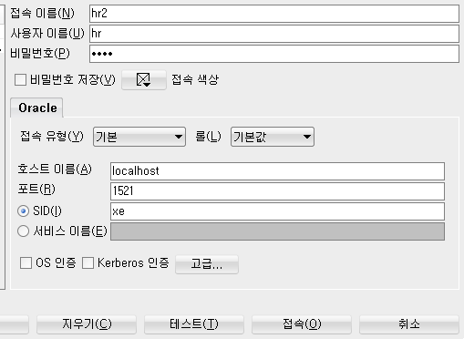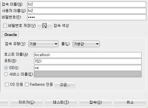 저는 계정명을 hr2 비밀번호는 1234 이렇게 줬습니다.