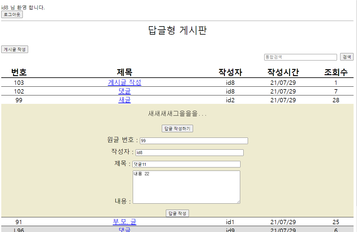 소스 깃허브링크 주소 경로 boardrestfront (Front 프로젝트), boardrestspring (Back 프로젝트) https://github.com/sblee1031/Kosta/tree/main/ORACLE_DB_THEOTY/Oracle_DB_project/myspring GitHub - sblee1031/Kosta: KOSTA_219 KOSTA_219. Contribute to sblee1031/Kosta development by creating an account on GitHub. github.com [KOSTA/Project] - 답변형 게시판 만들기(1) 답변형 게시판 만들기(1) 2021.07.29 - [KOSTA/Project] - 답변형 게시판 만들기 (2) 소스 깃허브링크..