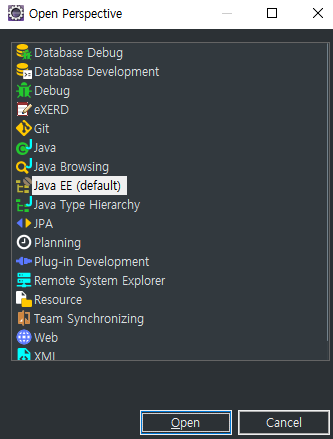 1. 이클립스 실행 후 우측 상단 open perspective클릭!