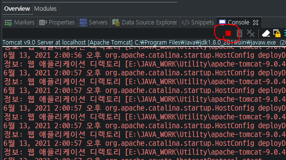 6. 이클립스(Eclipse)에서 Tomcat 서버 종료하기